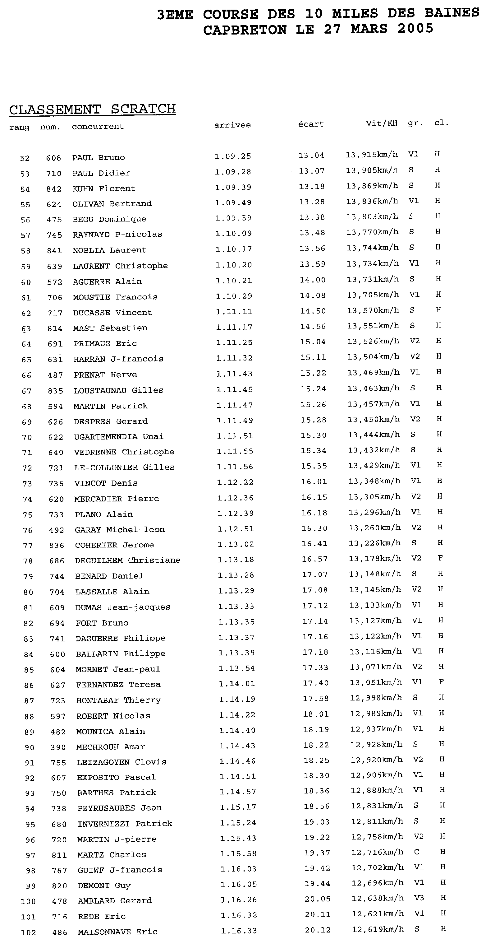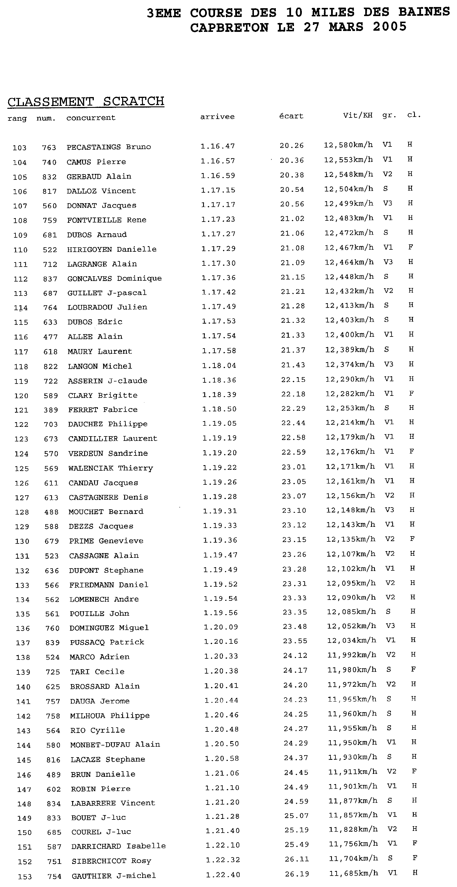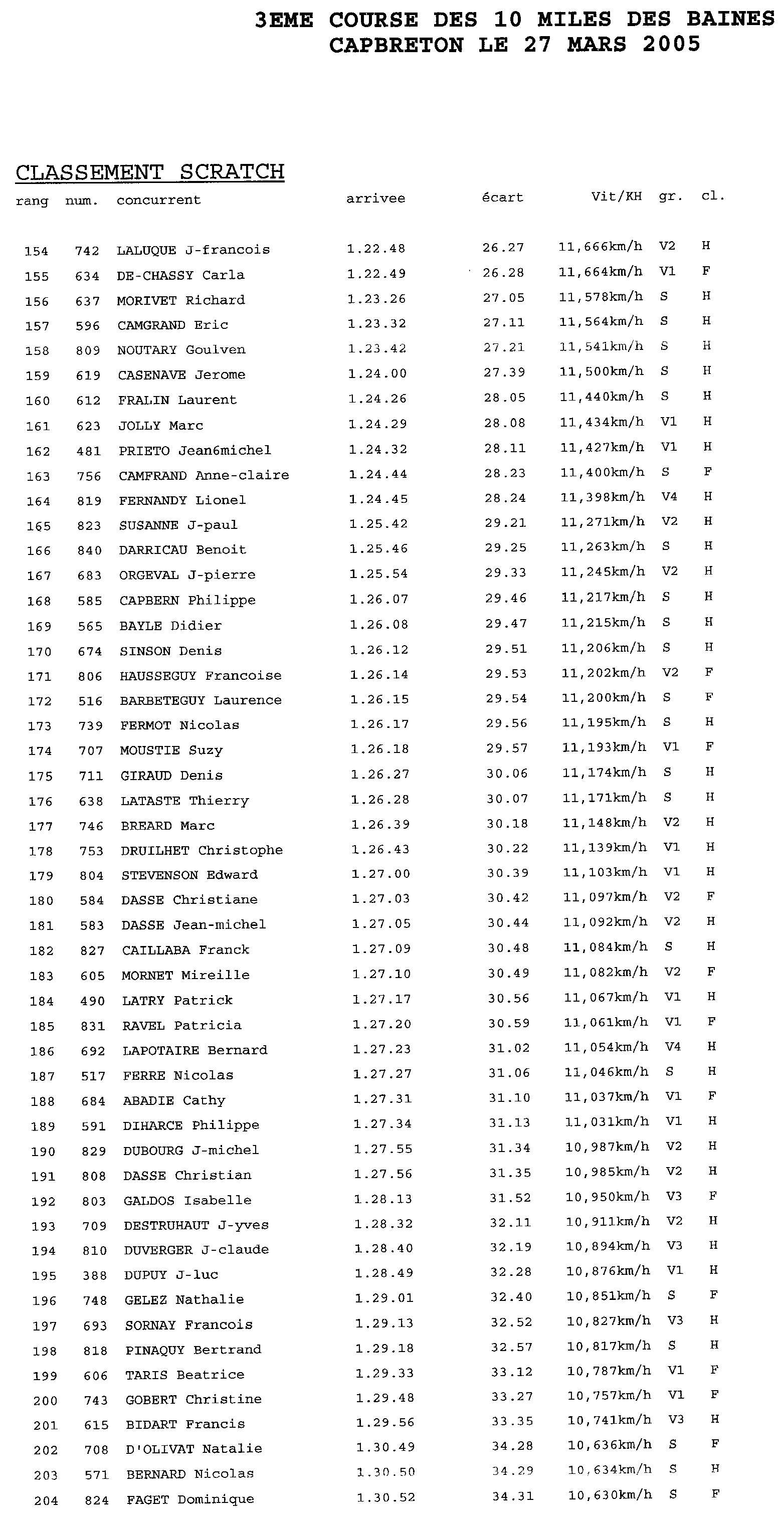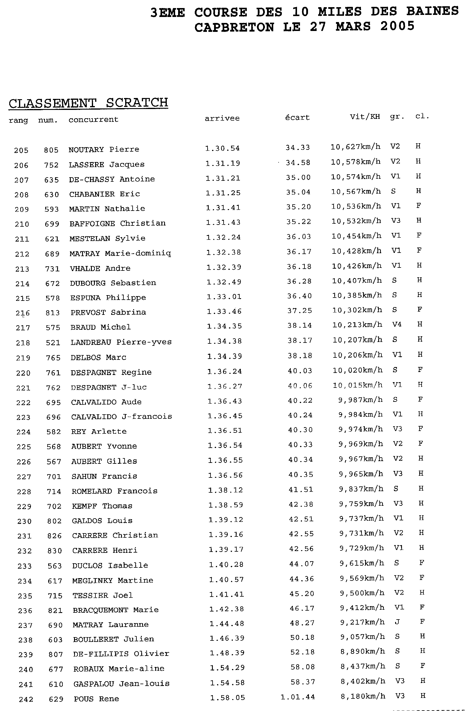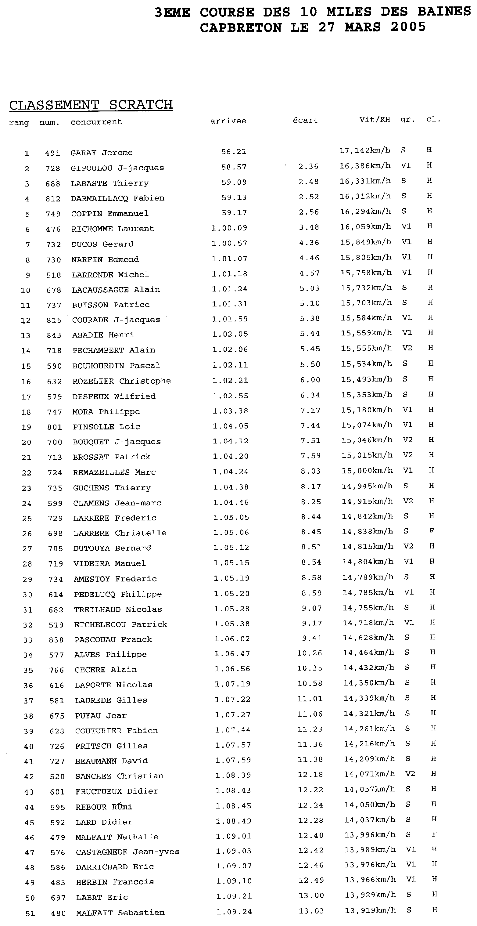 Voici les résultats de la course pour l'année 2005